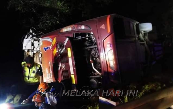 Beliau berkata setibanya di lokasi kejadian, pihaknya mendapati kemalangan melibatkan sebuah bas ekspres yang terbabas dan terbalik ke dalam longkang di sebelah laluan jalan dan terdapat dua mangsa yang cedera parah.