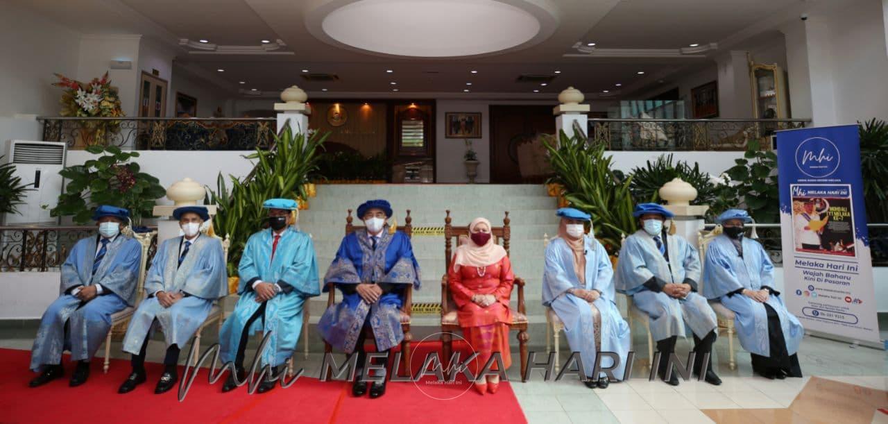 Menteri Pengajian Tinggi Datuk Seri Dr Noraini Ahmad mewakili Seri Paduka Baginda menyerahkan watikah pelantikan pada upacara pemasyhuran yang berlangsung di Dewan Seri Utama, Pejabat Yang di-Pertua Negeri Melaka, Ayer Keroh, di sini, semalam.