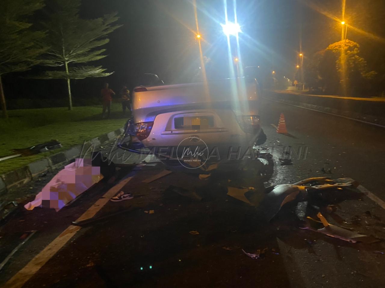 “Semasa lori terbabit melepasi lampu isyarat tersebut, kereta dinaiki kedua-dua mangsa yang datang dari arah Melaka merempuh bahagian sisi kiri lori berkenaan sebelum terbalik di tengah jalan.
