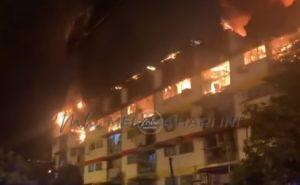 Dalam kejadian pada kira-kira 9.20 malam itu, lapan rumah di tingkat lima Blok 31 Perumahan Awam Sri Johor, Cheras terbakar dan operasi pemadaman masih dijalankan.- BERNAMA
