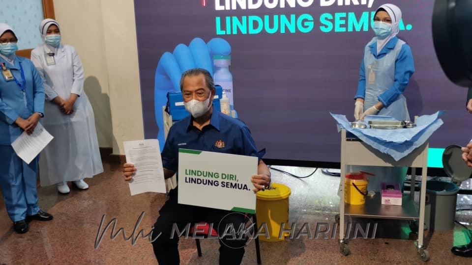 PUTRAJAYA 24 Feb. – Tan Sri Muhyiddin Yassin hari ini menerima suntikan vaksin COVID-19, menandakan bermulanya Program Imunisasi COVID-19 Kebangsaan, yang menyasar untuk memberikan imunisasi secara percuma kepada penduduk negara ini, baik rakyat tempatan mahupun warga asing.