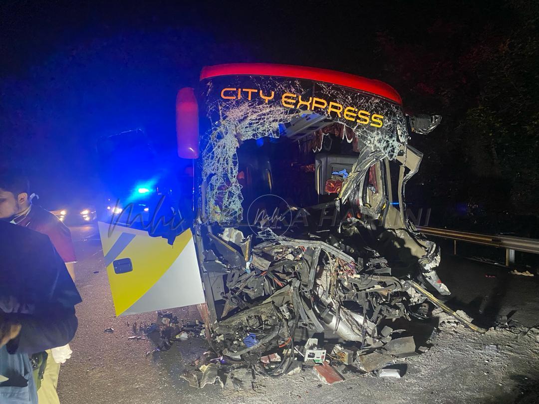 “Kemalangan dipercayai berlaku apabila bas ekpres berkenaan merempuh bahagian belakang treler yang berada di lorong kiri lebuh raya.