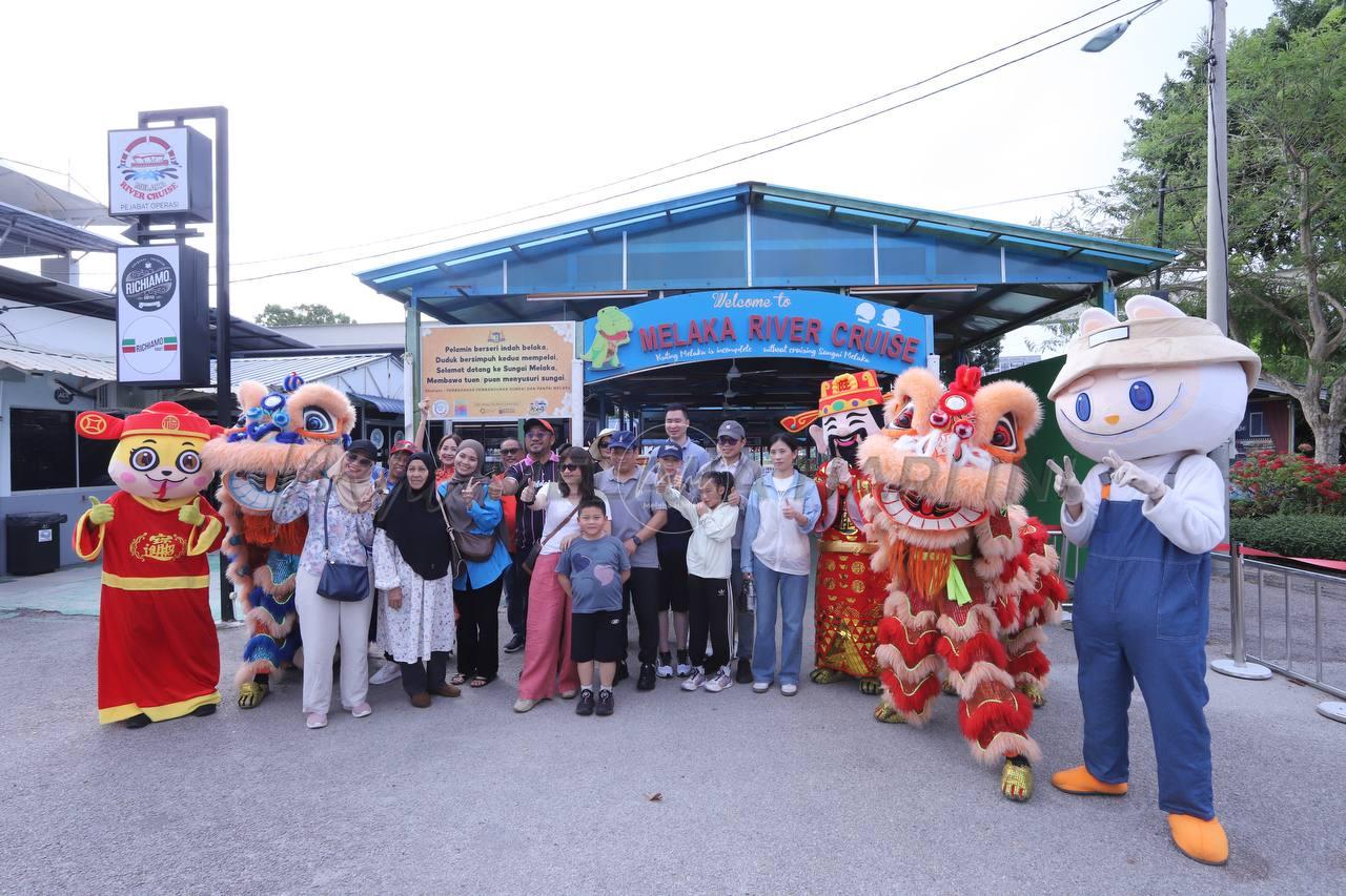 BANDARAYA MELAKA 3 Februari – Ketibaan pengunjung yang menaiki perkhidmatan Melaka River Cruise (MRC) di Taman Rempah, petang semalam, disambut dengan tarian singa dan pemberian angpau oleh pihak pengurusan Perbadanan Pembangunan Sungai dan Pantai Melaka (PPSPM).