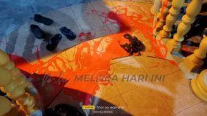 Md Deris Salleh, 62, berkata, bahagian sisi kanan Proton Persona menantu dan Proton Saga anak perempuan, lantai serta tangga rumah dibasahi cat merah berkenaan.