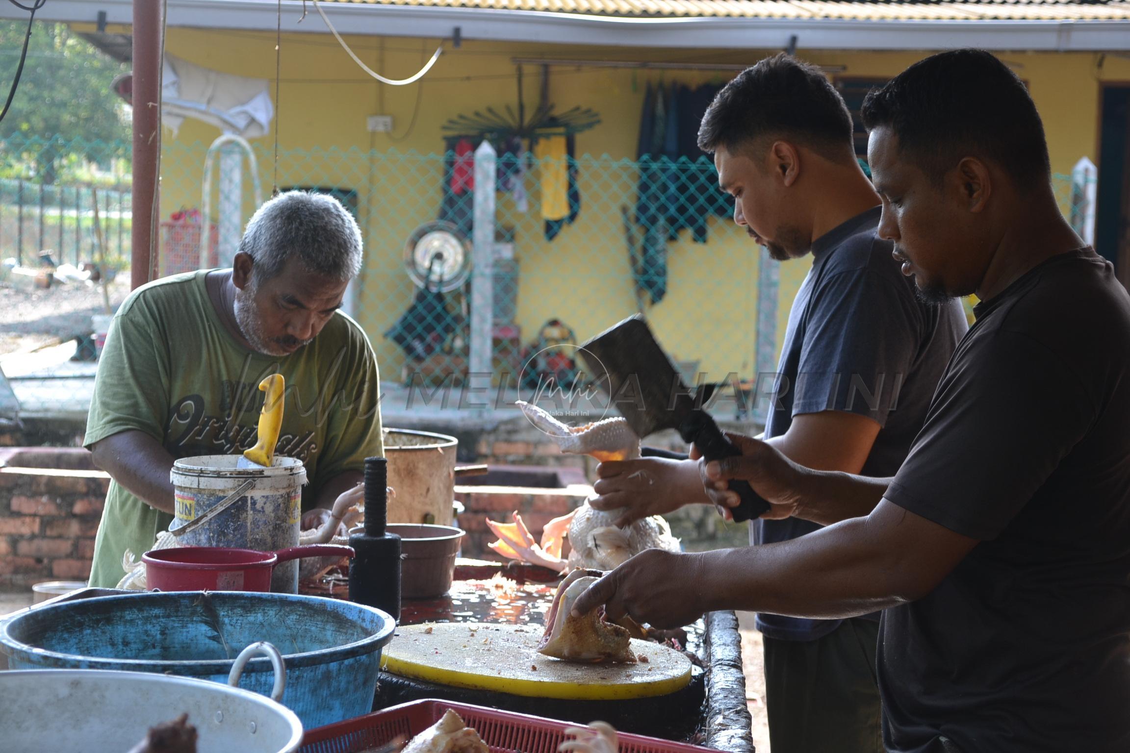 Mohd Nazri Hamzah, 38, dan Mohd Alif Shafili Zainal Abidin, 35, sibuk melayur ayam kampung dan itik sebelum memotongnya mengikut kehendak pelanggan.