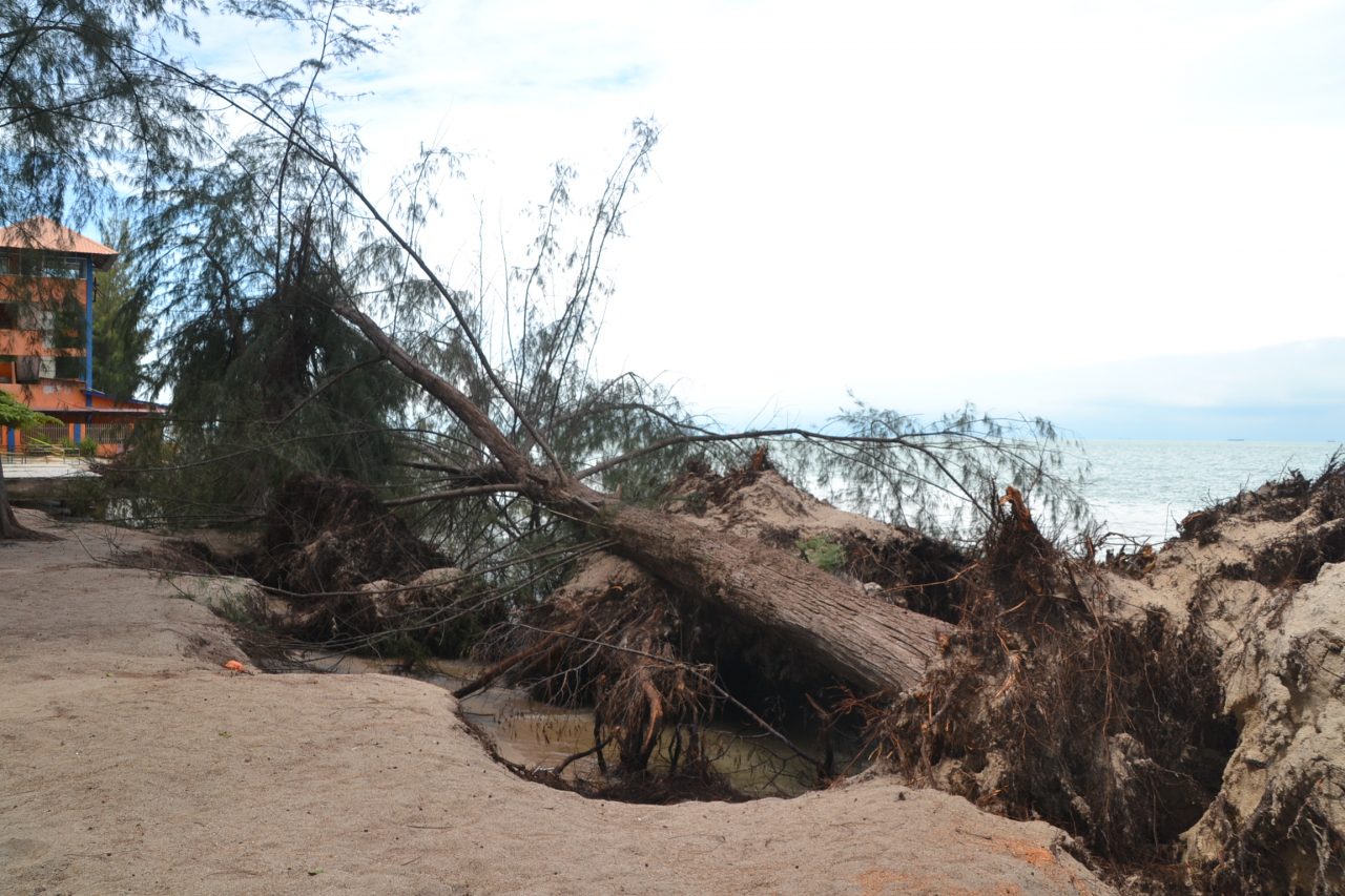 Pokok rhu yang ditanam kakitangan Majlis Bandaraya Melaka Bersejarah (MBMB) di Pantai Puteri pada awal 1990-an untuk memajukan industri pelancongan, kebanyakannya sudah tumbang akibat hakisan pantai.