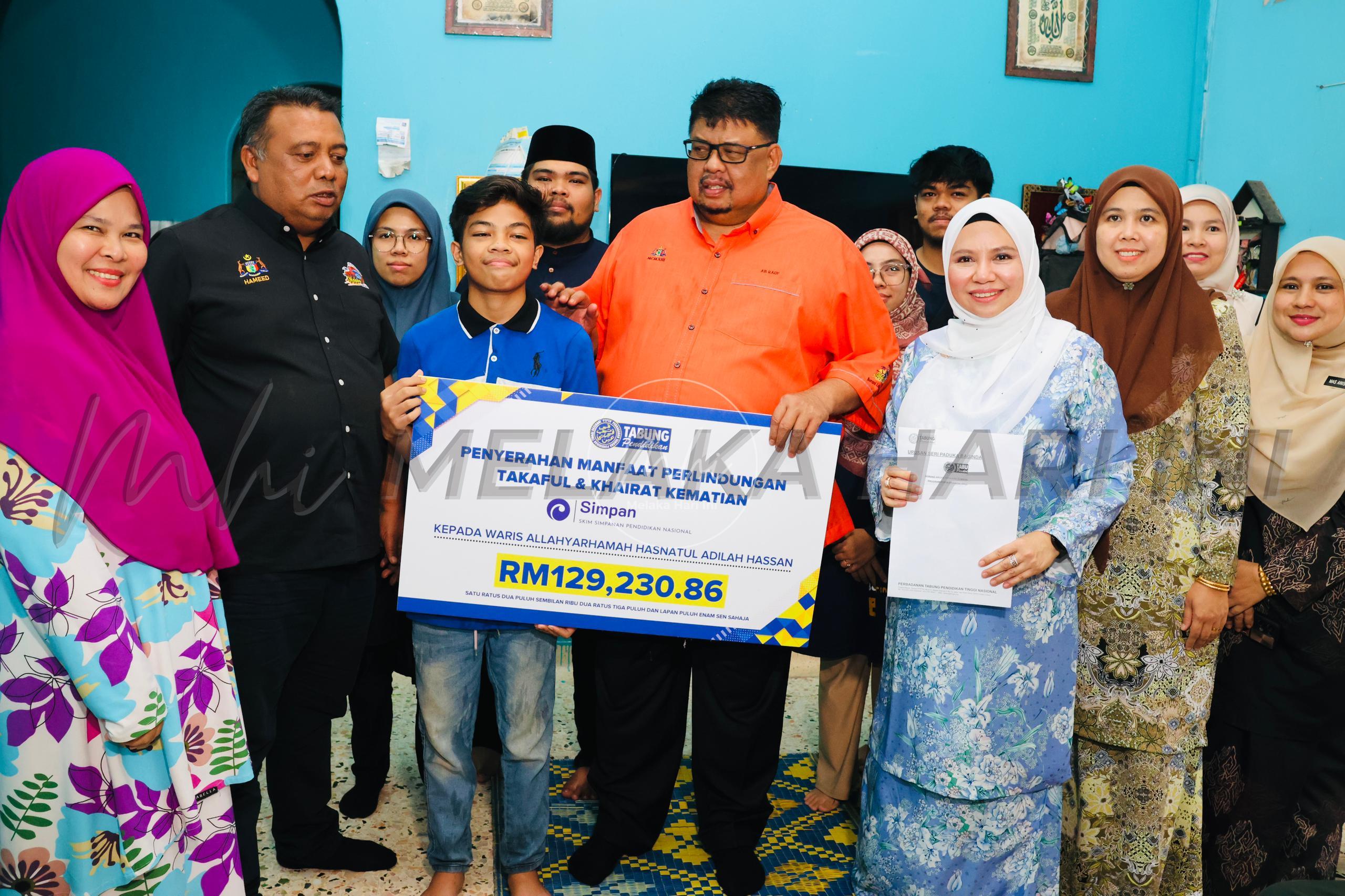 “Sememangnya nilai manfaat ini tidak dapat mengembalikan nyawa insan yang tersayang, namun dengan manfaat yang diterima dapat memastikan pendidikan anak-anak Allahyarhamah dapat diteruskan dan kelangsungan hidup mereka lebih terjamin,” katanya.